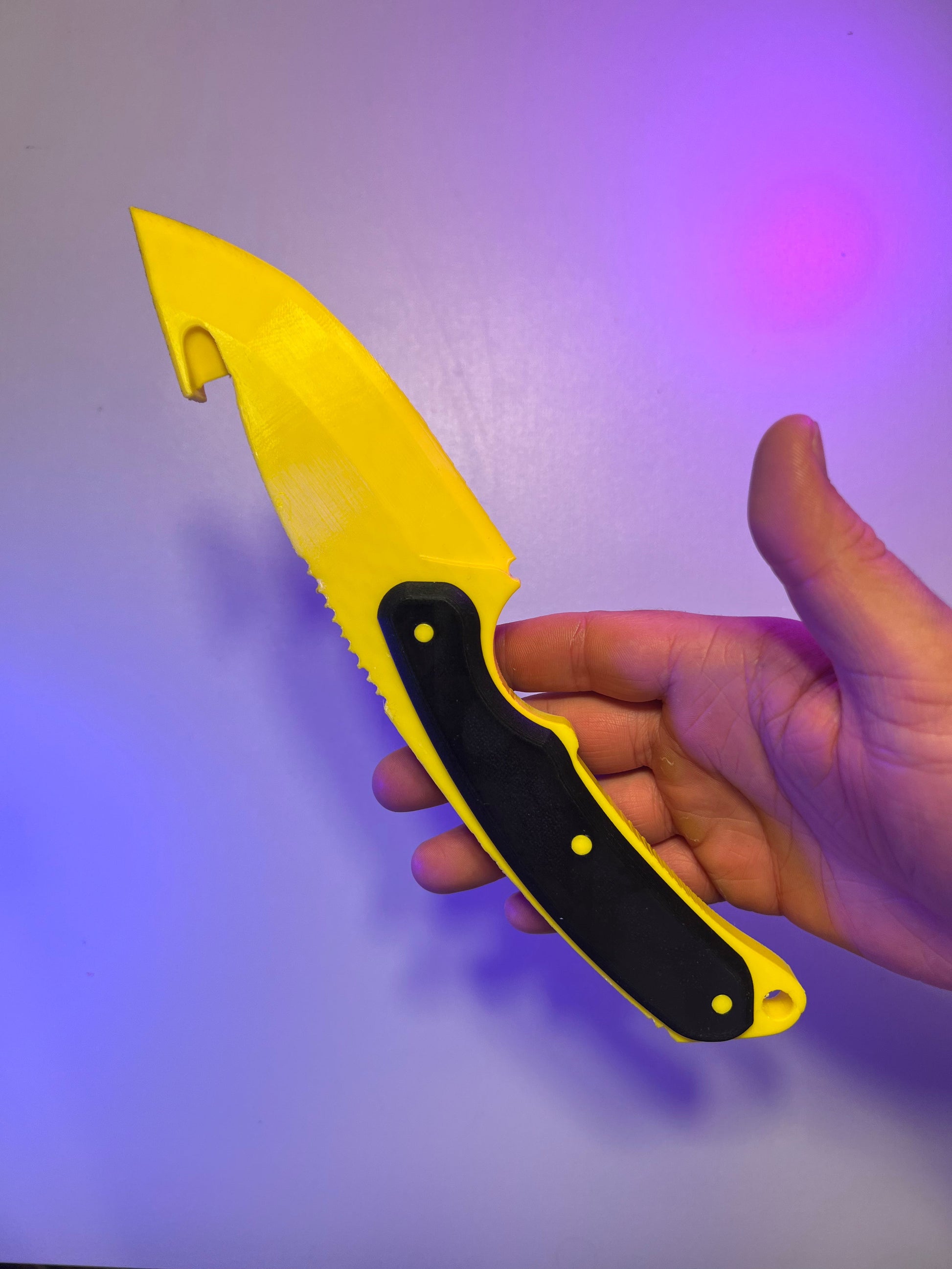 Replika Gut Knife to dekoracyjny przedmiot będący wiernym odwzorowaniem klasycznego noża o charakterystycznym, ostrym haczyku na końcu ostrza. Jest to świetny wybór dla kolekcjonerów oraz entuzjastów ceniących solidny i efektowny styl. Replika jest lekka, bezpieczna i idealnie nadaje się na prezent, dekorację lub rekwizyt do stroju. Została stworzona z użyciem wysokiej jakości filamentu PLA w technologii druku 3D.