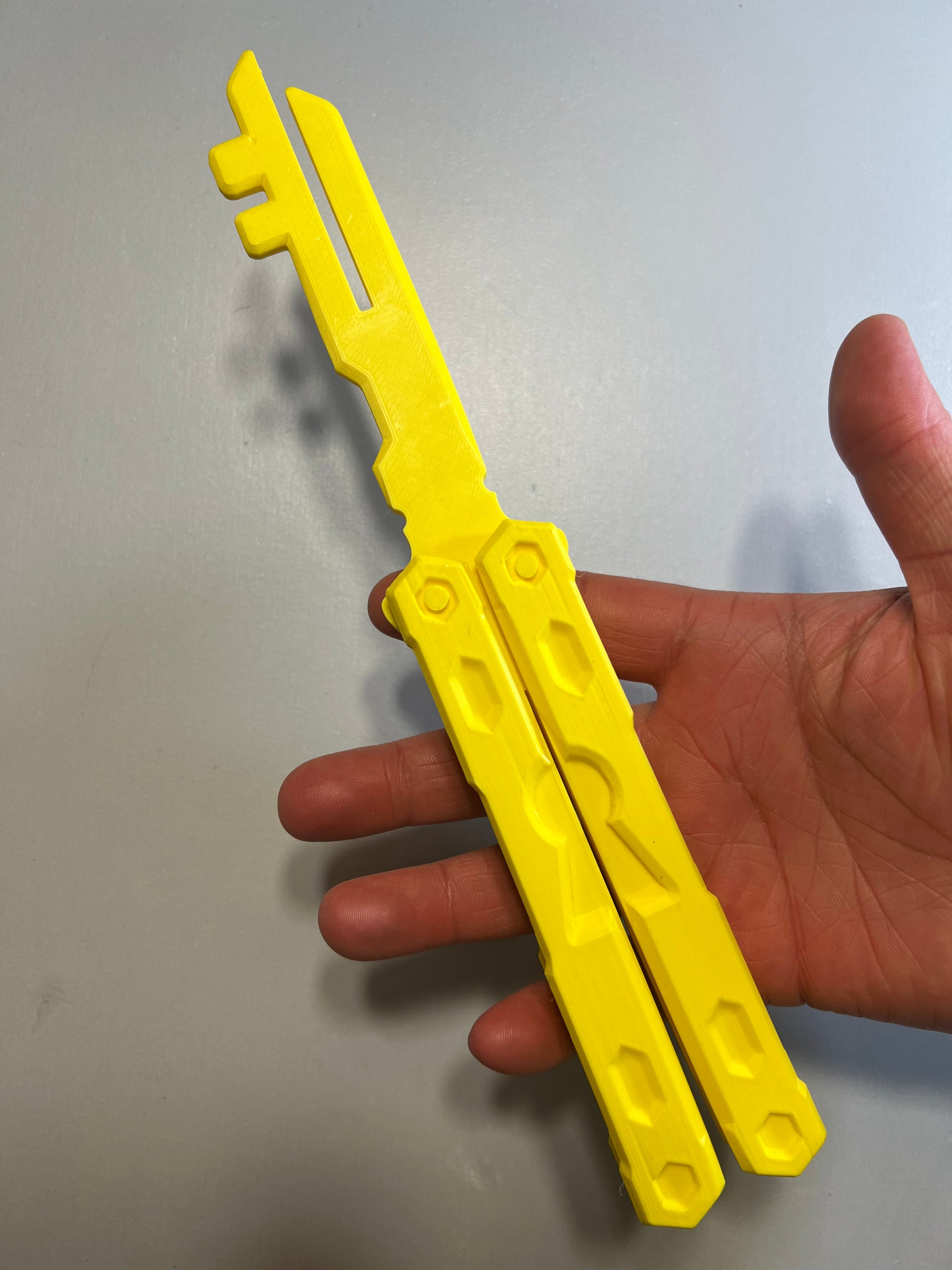 MOTYL to dekoracyjny przedmiot będący wiernym odwzorowaniem kultowej broni z Twojej ulubionej gry. Jej unikalny, gamingowy design doskonale oddaje klimat wirtualnego świata. Przedmiot jest lekki, całkowicie bezpieczny (nie posiada ostrego ostrza) i idealnie nadaje się na prezent dla fana, oryginalną dekorację biurka gracza lub rekwizyt do stroju. Został on precyzyjnie wykonany w procesie druku 3D z zastosowaniem trwałego filamentu PLA.