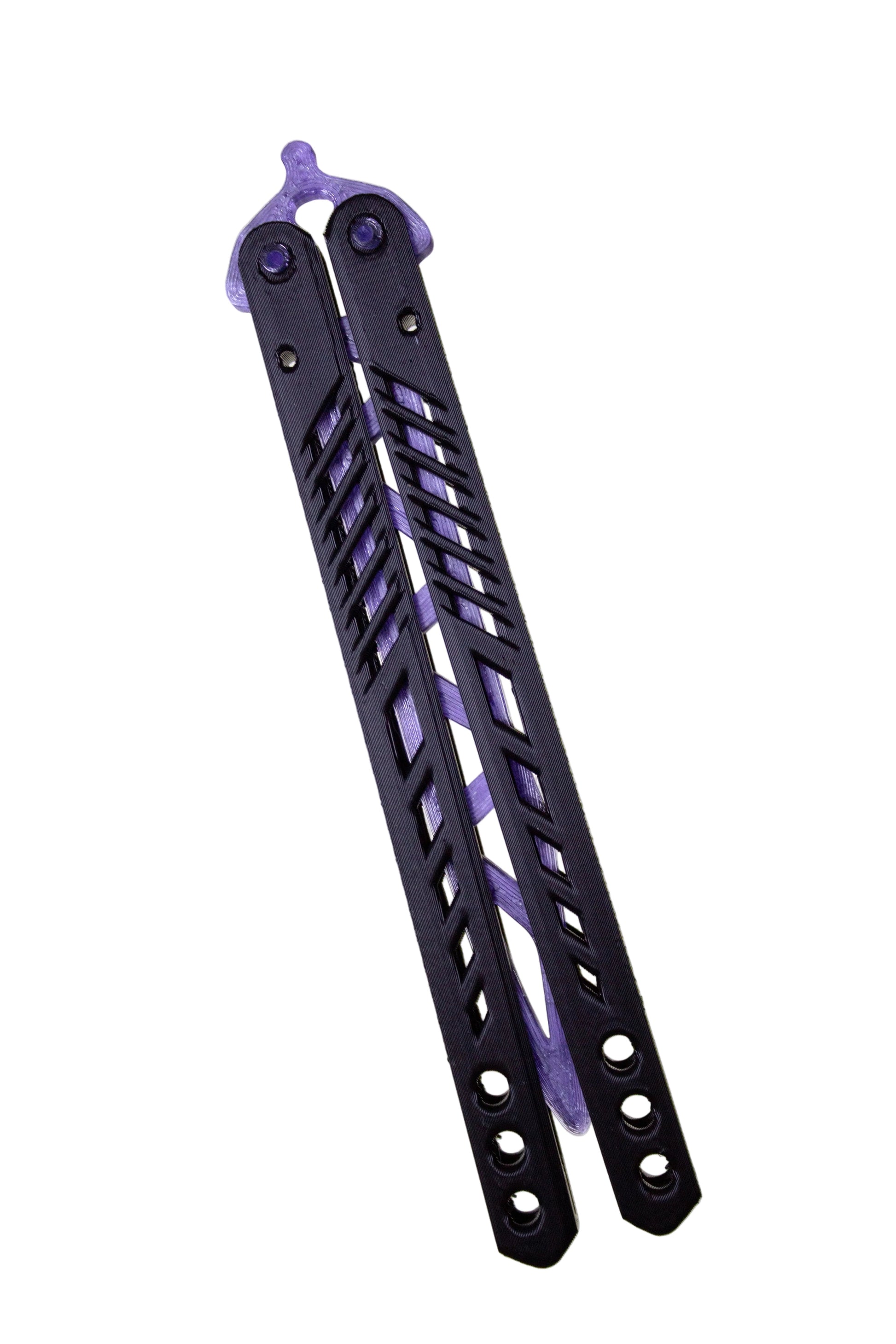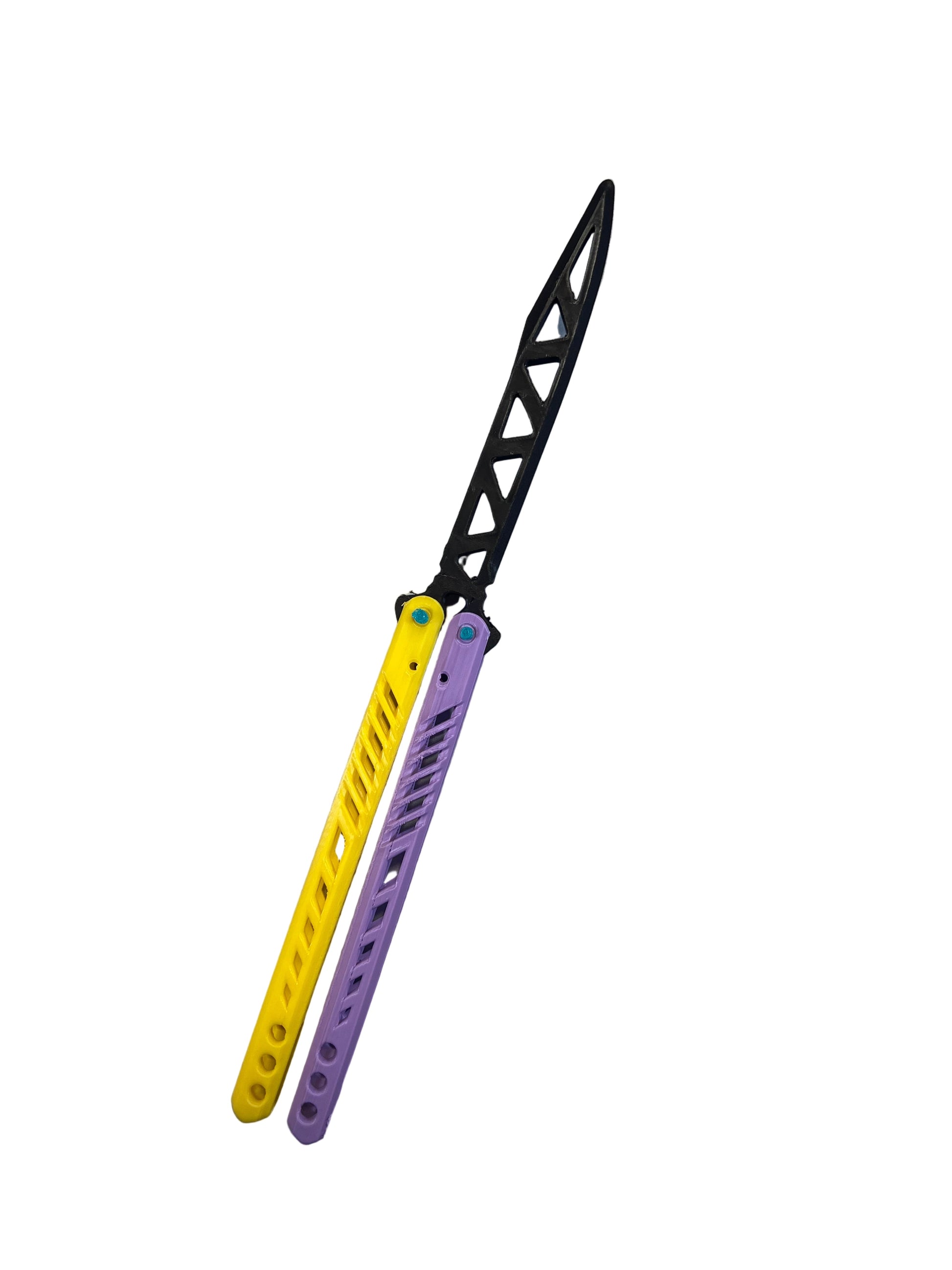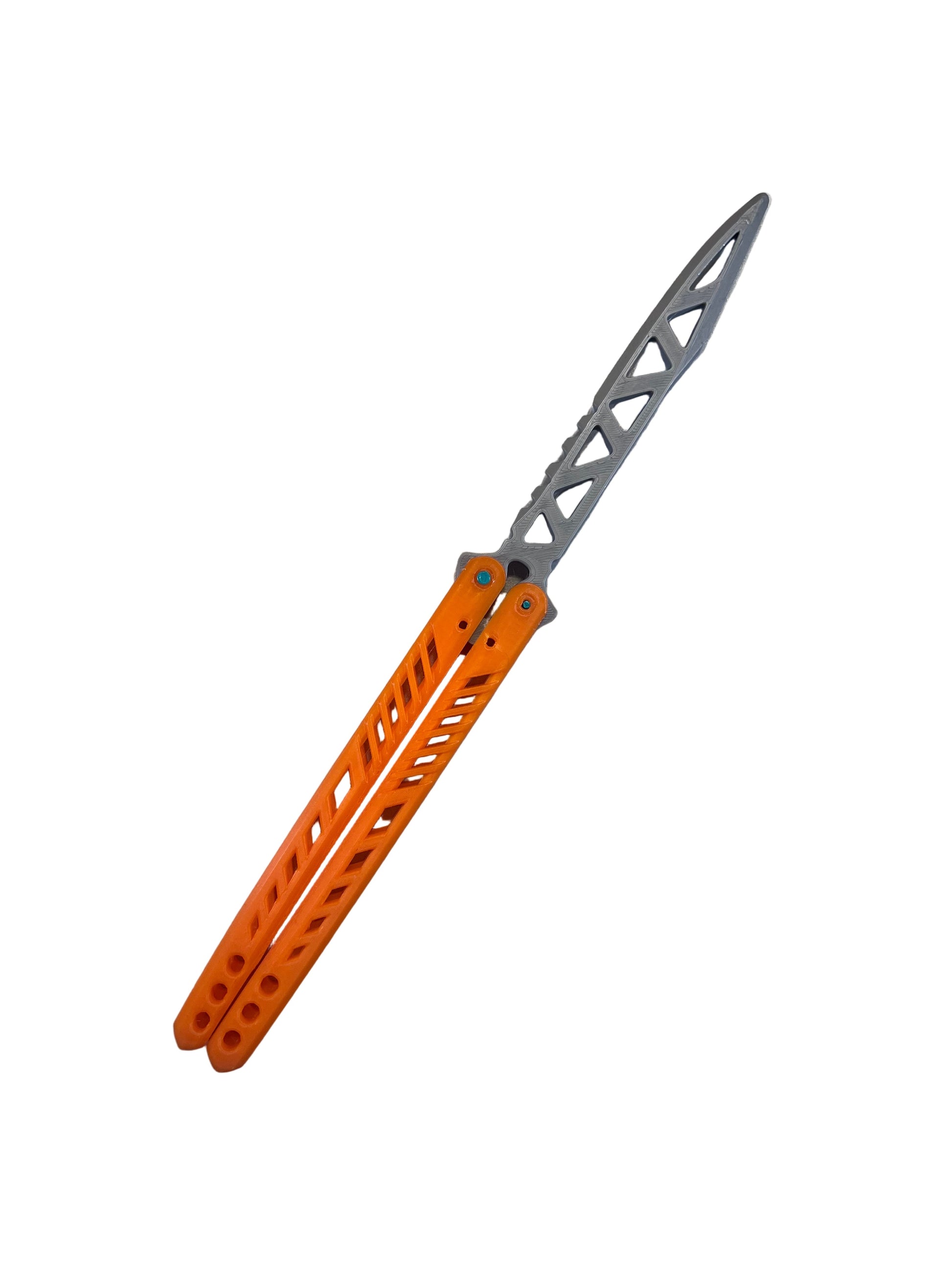 Nóż Motylek to dekoracyjny przedmiot będący wiernym odwzorowaniem noża o charakterystycznej, składanej rękojeści złożonej z dwóch prostych części. Taka budowa doskonale sprawdza się do ćwiczenia płynnych manipulacji oraz efektownych trików. Przedmiot jest lekki, bezpieczny i idealnie nadaje się na prezent, dekorację lub rekwizyt do stroju. Został on precyzyjnie wykonany w procesie druku 3D, z zastosowaniem trwałego filamentu PLA.