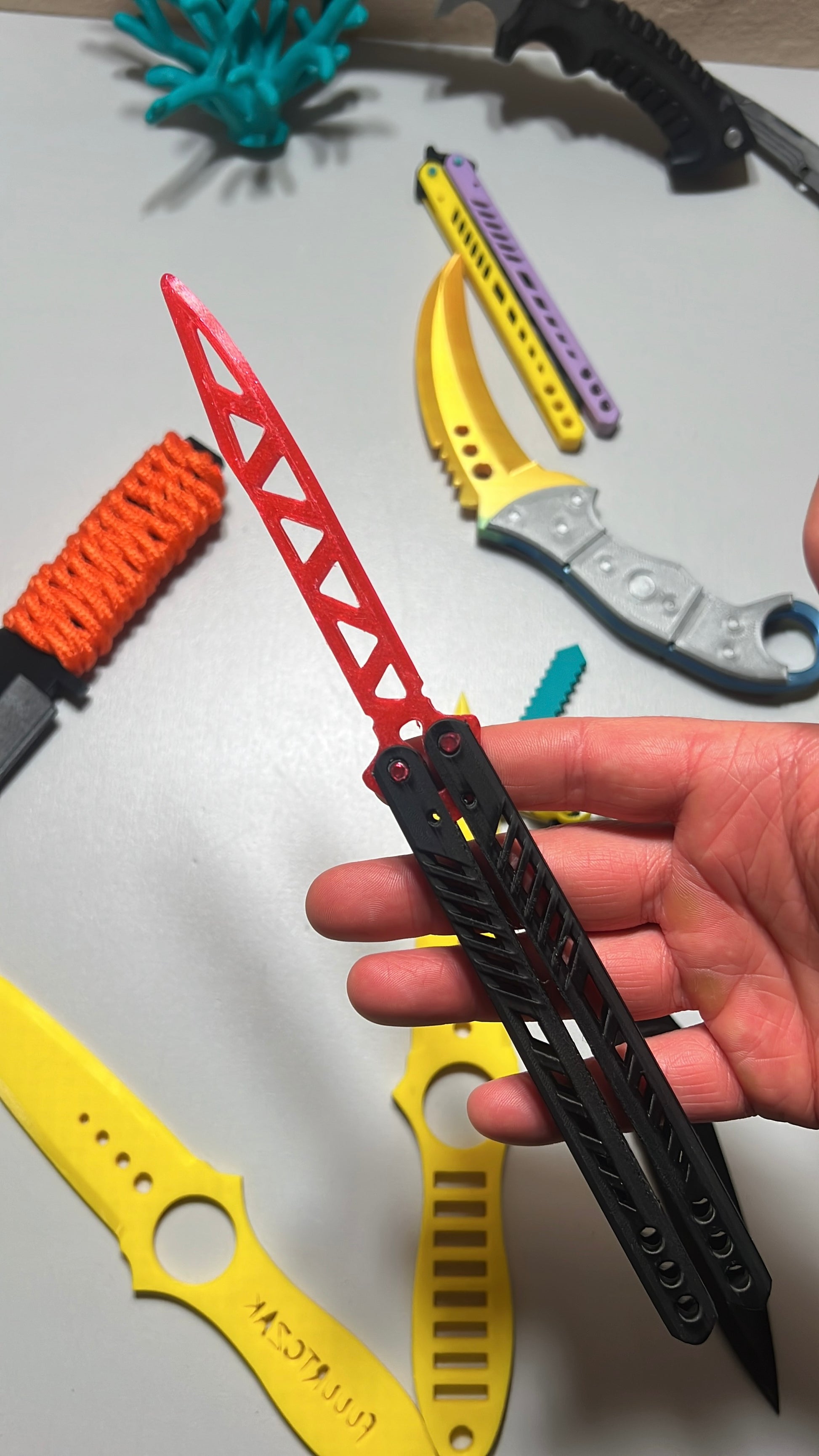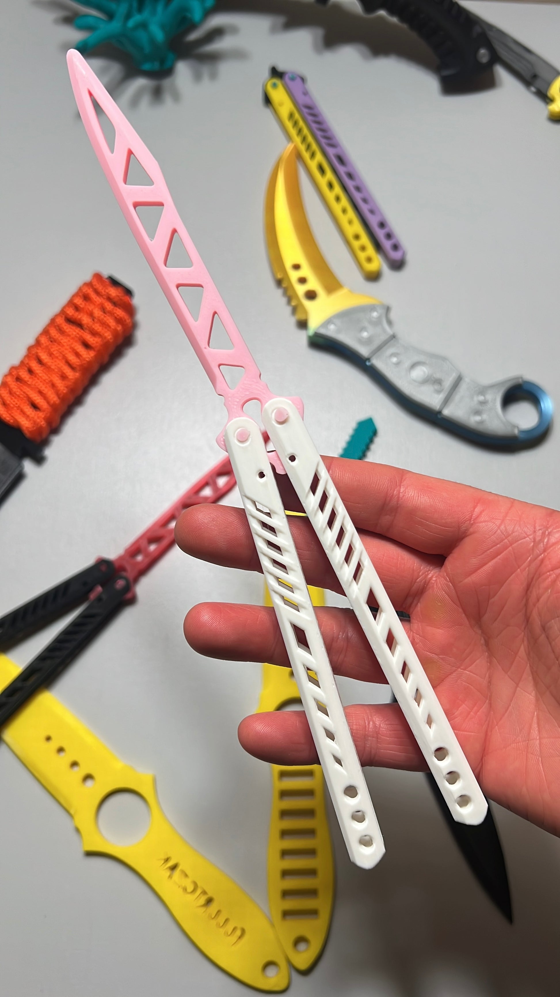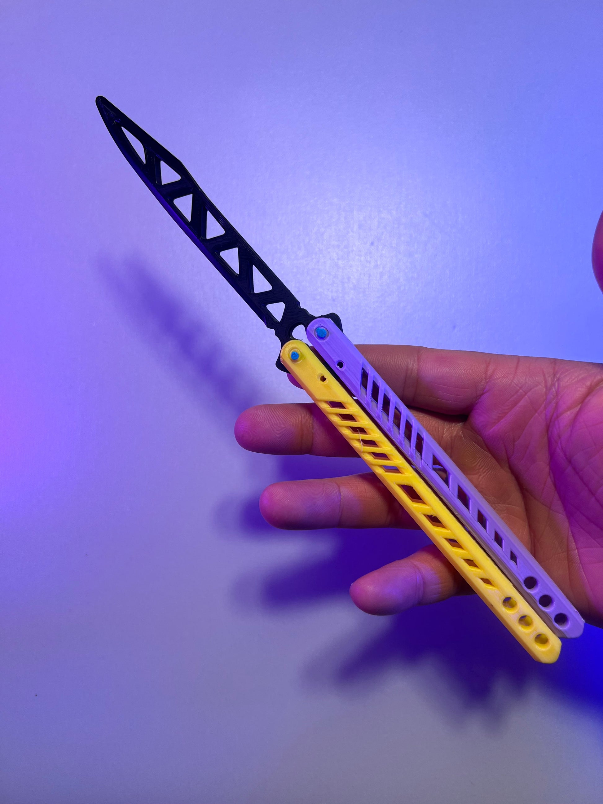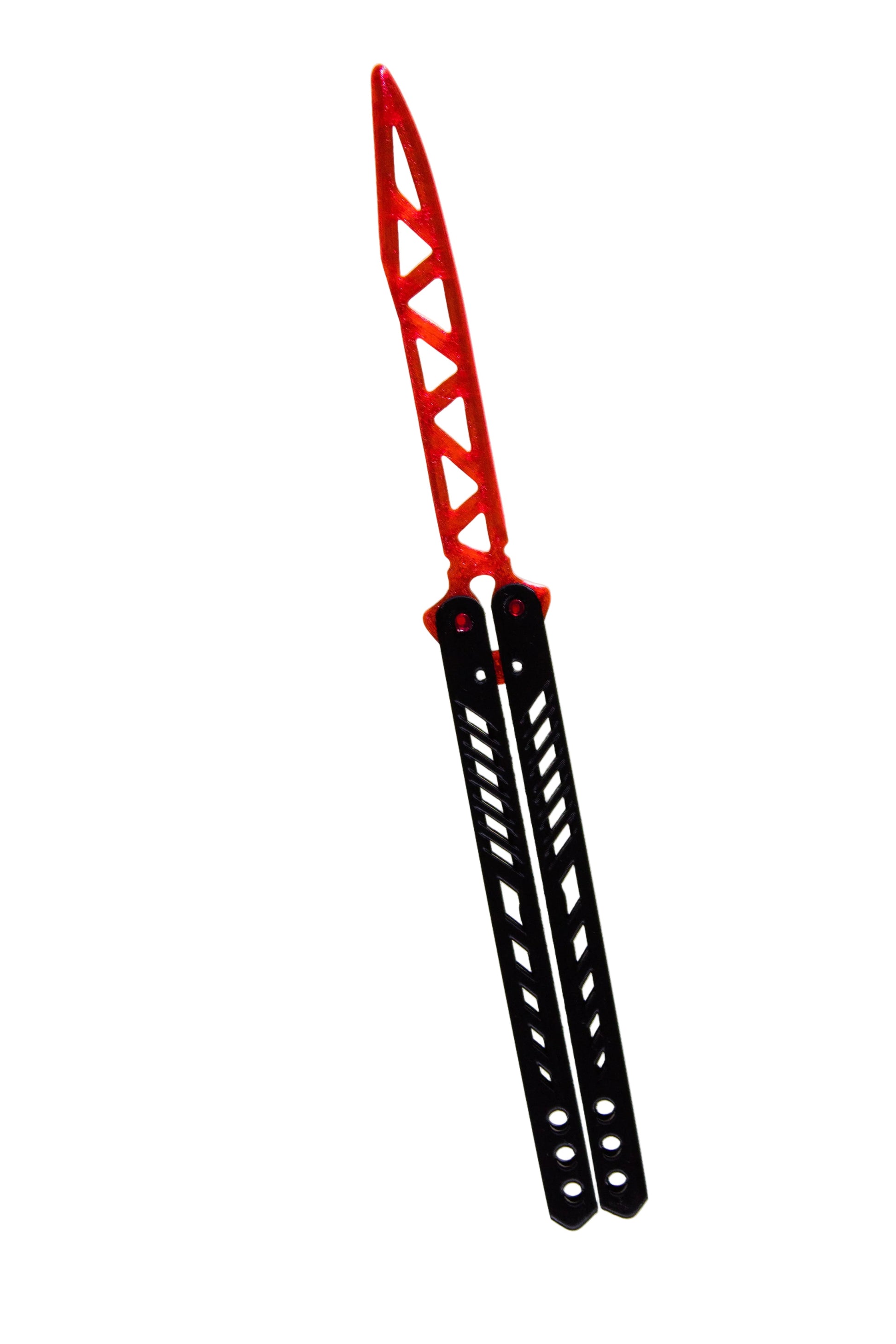Nóż Motylek to dekoracyjny przedmiot będący wiernym odwzorowaniem noża o charakterystycznej, składanej rękojeści złożonej z dwóch prostych części. Taka budowa doskonale sprawdza się do ćwiczenia płynnych manipulacji oraz efektownych trików. Przedmiot jest lekki, bezpieczny i idealnie nadaje się na prezent, dekorację lub rekwizyt do stroju. Został on precyzyjnie wykonany w procesie druku 3D, z zastosowaniem trwałego filamentu PLA.
